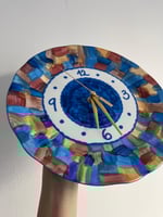 Elevate your space with this exquisite 11-inch Blue Willow Mosaic Clock. Expertly crafted from a repurposed vintage ceramic plate, this piece features the iconic blue and white porcelain pattern reimagined as a functional timepiece. Hand-finished with elegant gold accents, it’s a soulful blend of history and craftsmanship.