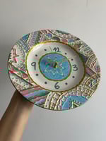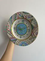 Bring a touch of artistic serenity to your home with this one-of-a-kind wall clock. Handcrafted from a repurposed ceramic plate, this piece transforms a classic household item into a vibrant work of functional eco-art.