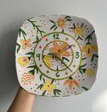 11" Floral Ceramic Wall Clock, Gold Accent Porcelain Plate Clock, Unique Housewarming gift