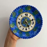 5.5" Handmade Lemon Blue Ceramic Clock: Whimsical Pottery Decor