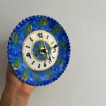 Crafted by an eco-conscious artist, this pottery clock is created from repurposed materials—giving new life to ceramic while reducing waste. Its intricate hand-painted details and vibrant palette make it a unique work of functional art.