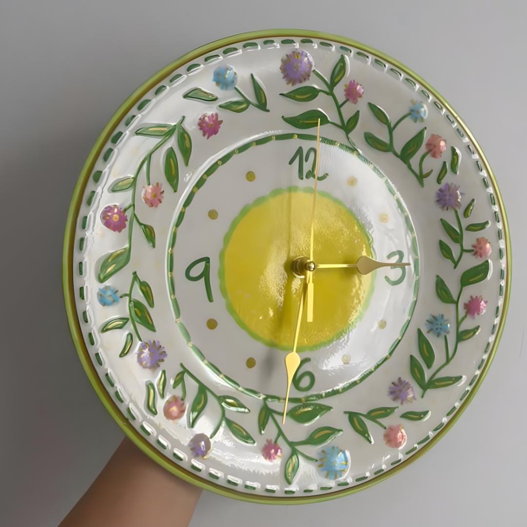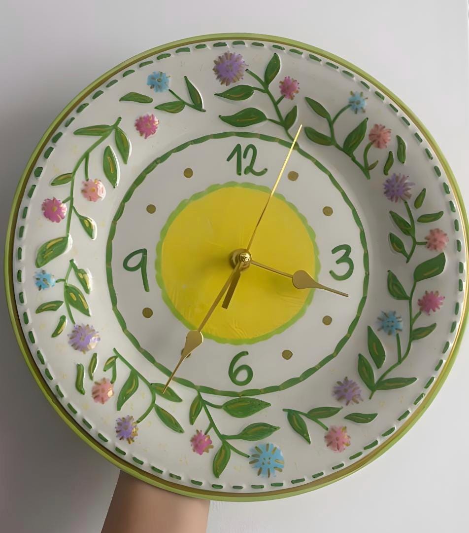 Looking for a cheerful statement piece or a thoughtful one-of-a-kind gift? This charming lemon blossom wall clock is crafted from a beautifully repurposed ceramic plate, transforming vintage tableware into functional art for your home. Measuring approximately 11" inches in diameter, it’s the perfect size to brighten up a kitchen, bedroom, office, or cozy nook.