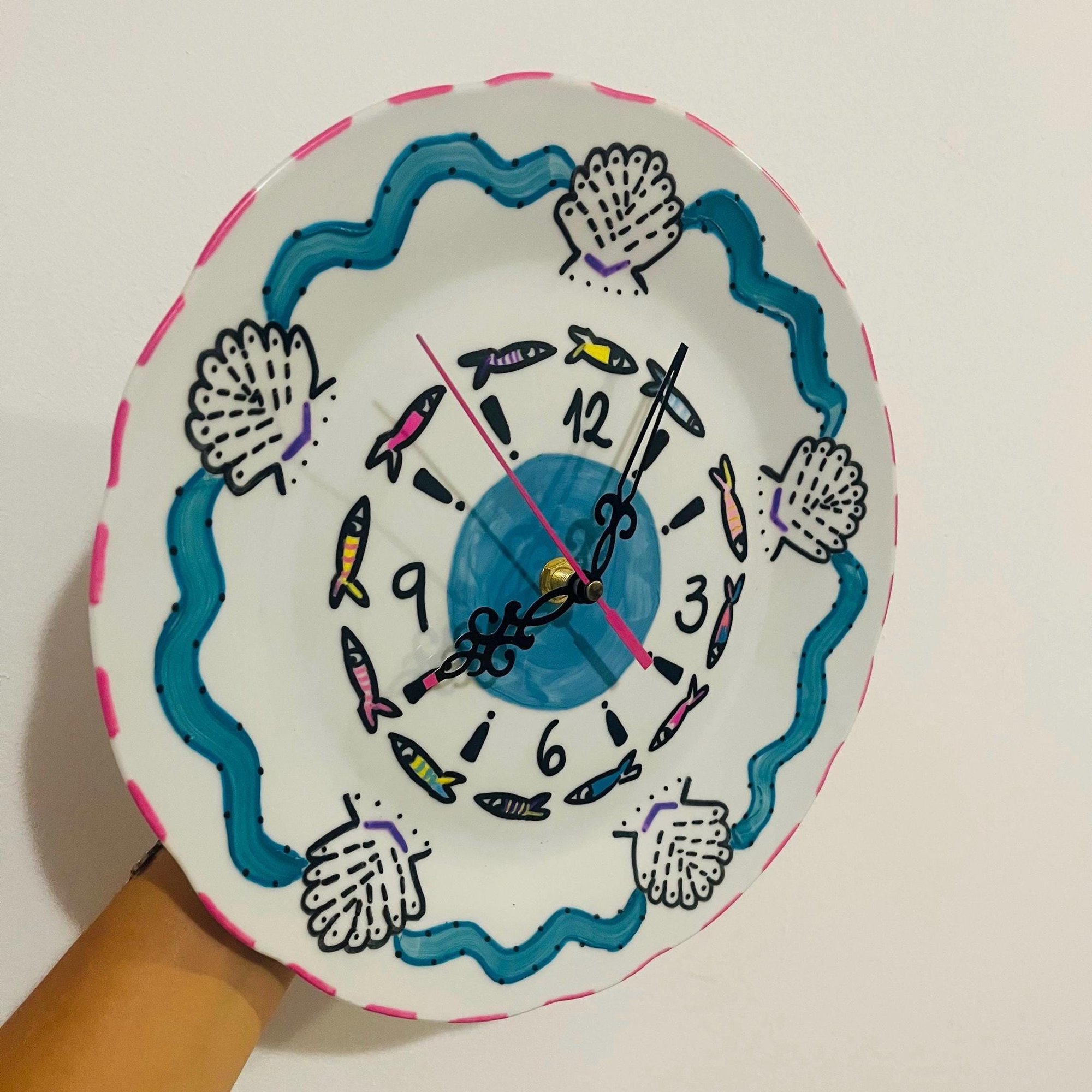 11" Mediterranean Ceramic Wall Clock: Handmade Italian-Inspired Coastal Decor